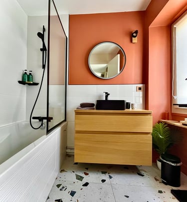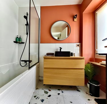 Salle de bain design privative Terrazo avec baignoire